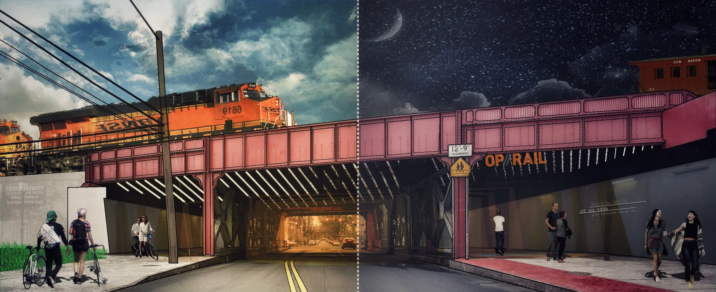 Underutilized railroad underpasses become sensual attractors that enhance the experience + mobility through the city, engaging designers, artisans + the public.